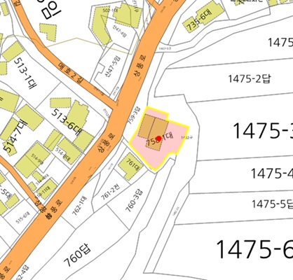 건물 2차선도로접